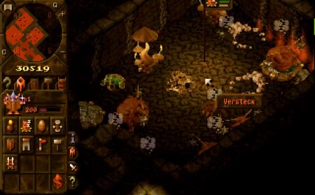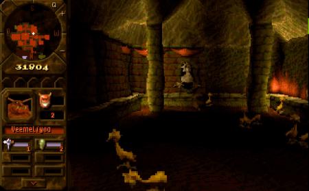 - Die Spielmechanik bot eine bemerkenswerte Tiefe: Spieler mussten Räume sinnvoll platzieren, Kreaturen anlocken und pflegen, Ressourcen managen und gleichzeitig den Feind im Auge behalten. Die Mischung aus Strategie, Management und Kampf war sehr gut ausbalanciert. Besonders spannend: Man konnte in die Ego-Perspektive der Kreaturen wechseln und selbst durch den Dungeon streifen – ein Novum damals, aber im eigentlichen Spiel nur selten sinnvoll nutzbar.